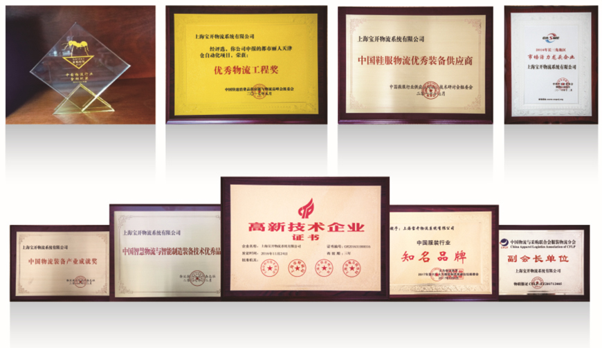 作為上海市高新技術(shù)企業(yè)、ISO認(rèn)證企業(yè)、雙軟認(rèn)證企業(yè) ,寶開多項(xiàng)核心技術(shù)已獲得國家專利,同時(shí),寶開是中國物流與采購聯(lián)合會服裝物流分會副會長單位,中國倉儲配送協(xié)會家居物流分會會員單位,《物流技術(shù)與應(yīng)用》雜志理事單位,榮獲“2016年長三角地區(qū)市場活力龍頭企業(yè)”、“2016-2017年度中國物流行業(yè)金螞蟻獎(jiǎng)”、“全國發(fā)明金獎(jiǎng)”(AS/RS立體倉庫系統(tǒng)在紡織行業(yè)的應(yīng)用)、“2018致敬改革開放中國鞋服供應(yīng)鏈與物流優(yōu)秀集成商”、“2018中國制造業(yè)優(yōu)秀物流工程獎(jiǎng)”、“2019鞋服供應(yīng)鏈與物流優(yōu)秀供應(yīng)商”、“2019物流裝備產(chǎn)業(yè)產(chǎn)品技術(shù)創(chuàng)新獎(jiǎng)”、2020年吳涇地區(qū)“創(chuàng)新活力獎(jiǎng)”等多項(xiàng)榮譽(yù)。